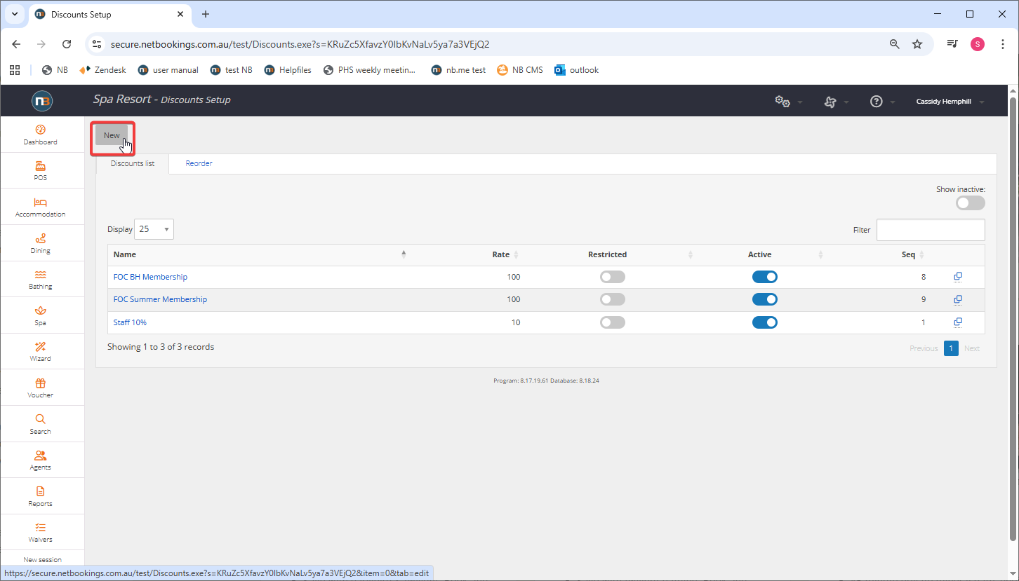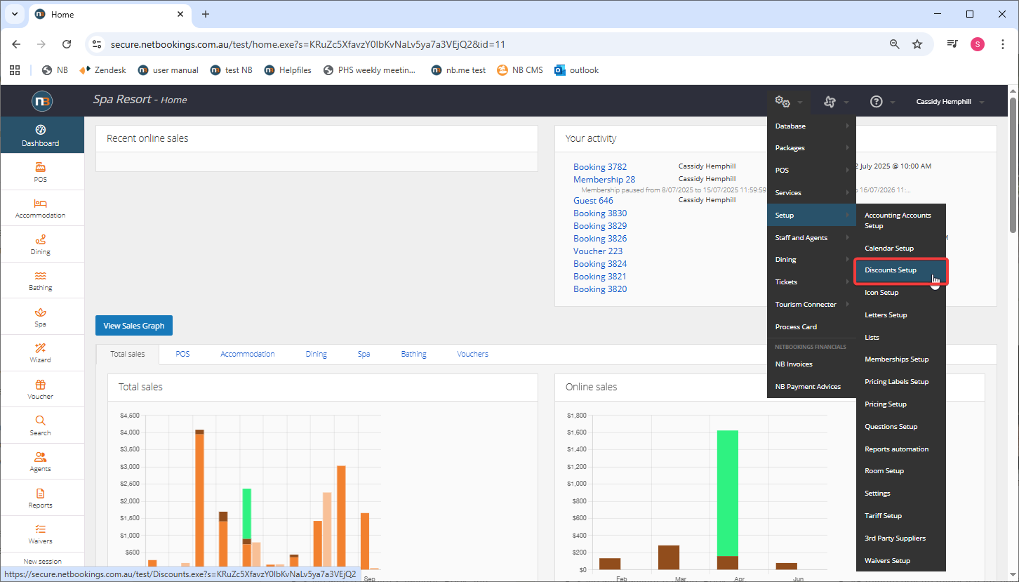 Discounts can also be applied by staff in the booking screen or in the POS system.